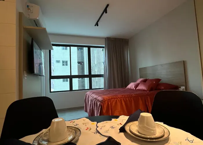 이 Recife Praia Flat 아파트는 헤시피의 Boa Viagem 지역에 위치해 있으며 레시페 / 구아라라페스 질베르투 프레이리 국제공항 공항에서 0.9km 떨어져 있습니다. Airport 지하철역에서 도보로 약 10분 거리에 위치한 이 숙박 시설은 1개의 침실, 1개의 욕실과 부엌으로 구성되어 있습니다.
